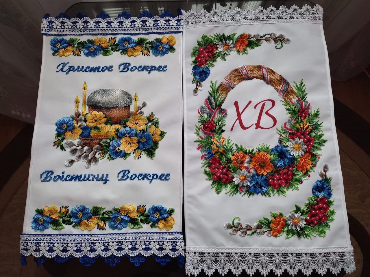 – Цьогоріч своєрідний тренд на синьо-жовті кольори. Тому саме в цих відтінках у мене замовили три рушнички на пасхальний кошик. Також вишиваю рушники на Спаса, весілля (як-от під коровай, «На щастя й долю») і просто так. Було, що одна жіночка замовила в мене відразу чотири рушники в чорно-червоних кольорах і забрала їх закордон. Щоб вишити один рушничок, мені треба орієнтовно тиждень часу. Фото своїх робіт опубліковую у «вишивальних» спільнотах у фейсбуці, замовляють люди з різних куточків України. Найчастіше – із Львівщини та Івано-Франківщини. Навіть на Закарпаття відправляла «Таємну вечерю», – розповідає Зоряна Фальчик.