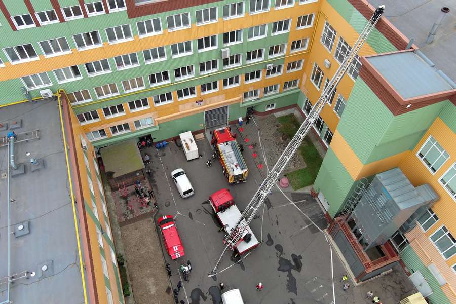 Відповідно до тактичного задуму, під час виконання робіт з налаштування відбулося загоряння на п'ятому поверсі в приміщенні дахової газової котельні. За викликом на місце події терміново прибули аварійно-рятувальні служби міста. Рятувальники швидко ліквідували пожежу та врятували «потерпілого» працівника.