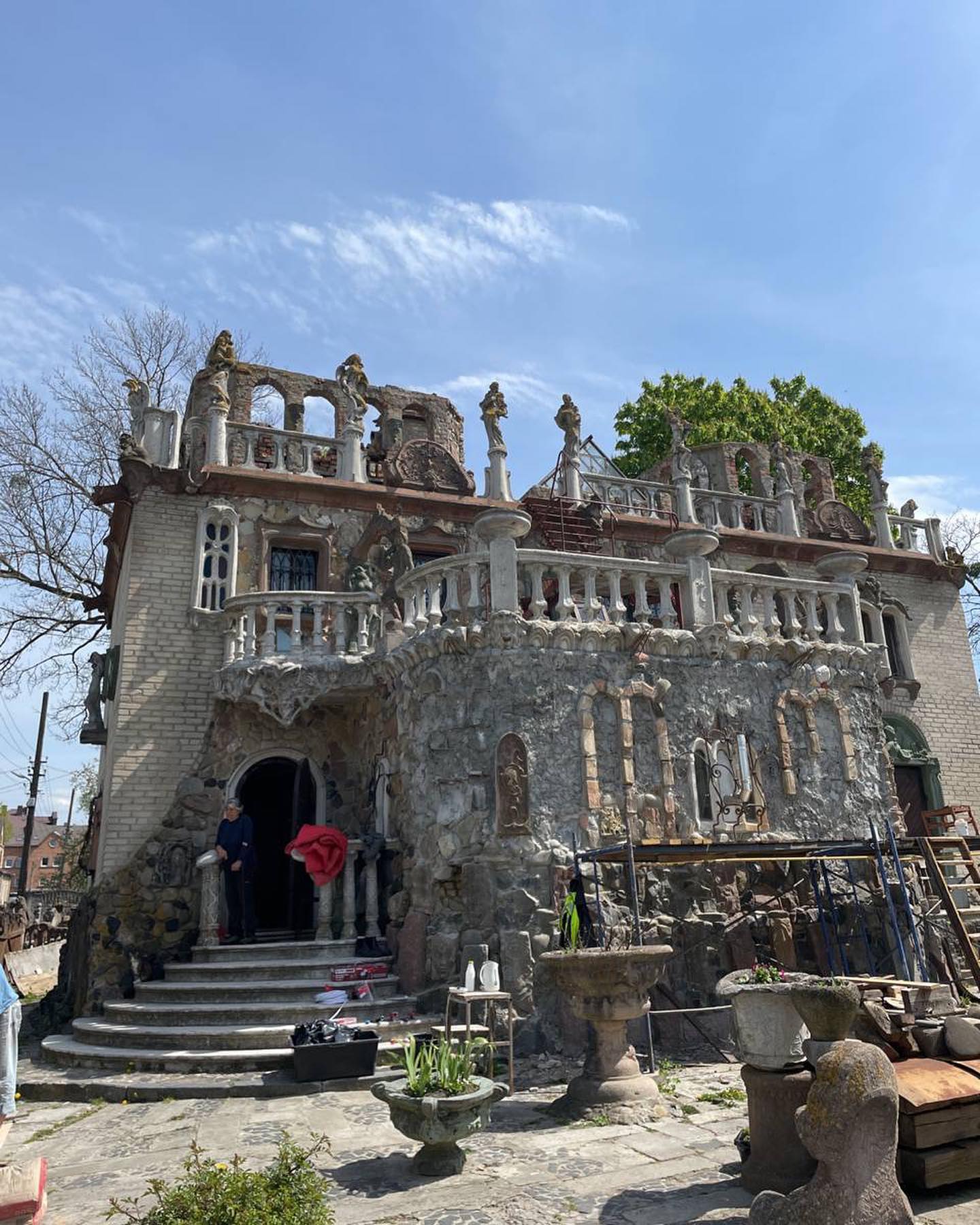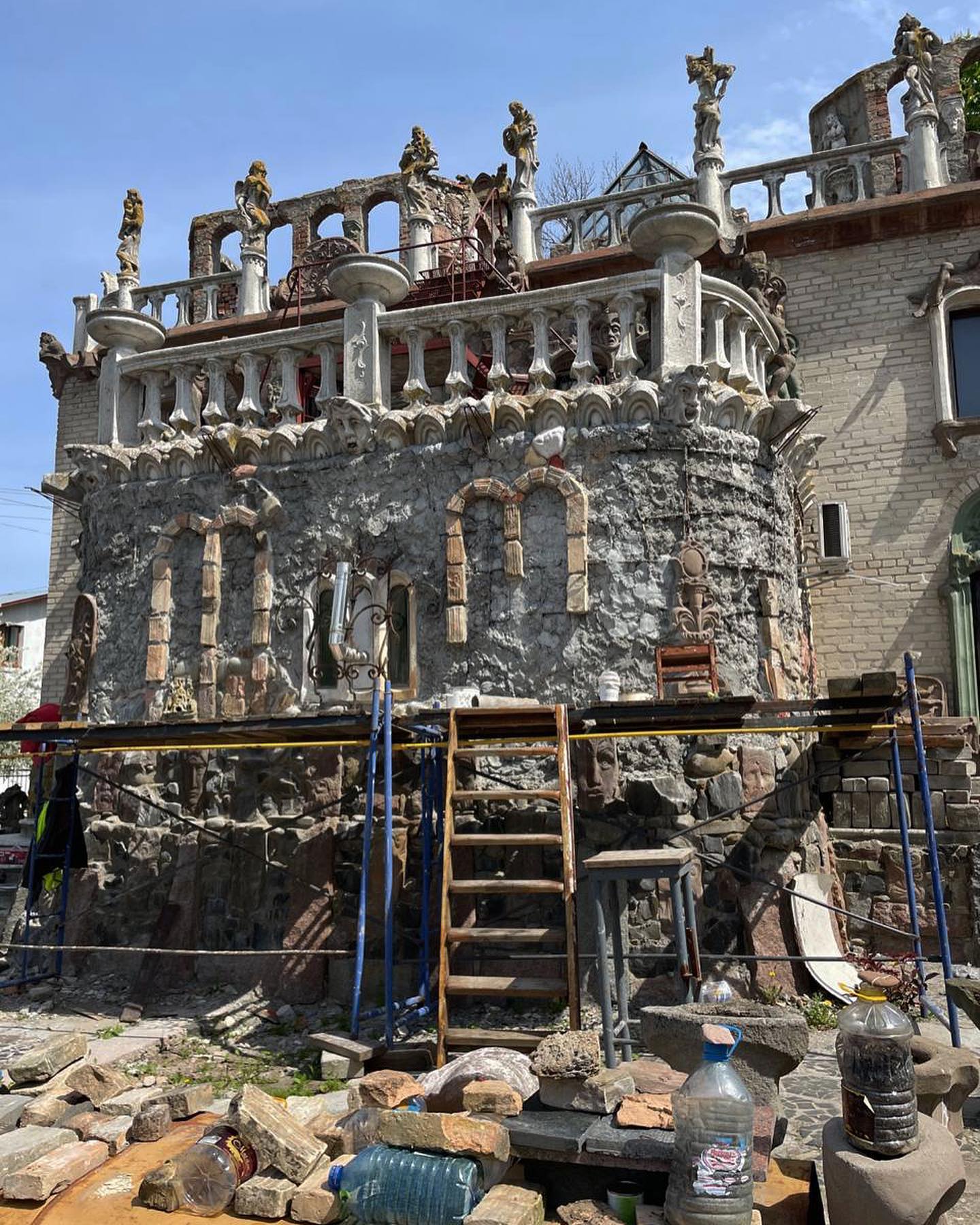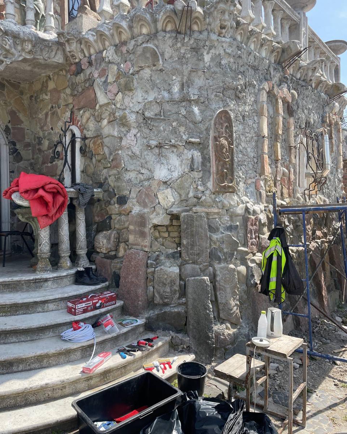 З фото видно, що наразі шпаклюється та оздоблюється передня частина будинку, яка з роками почала обвалюватися.