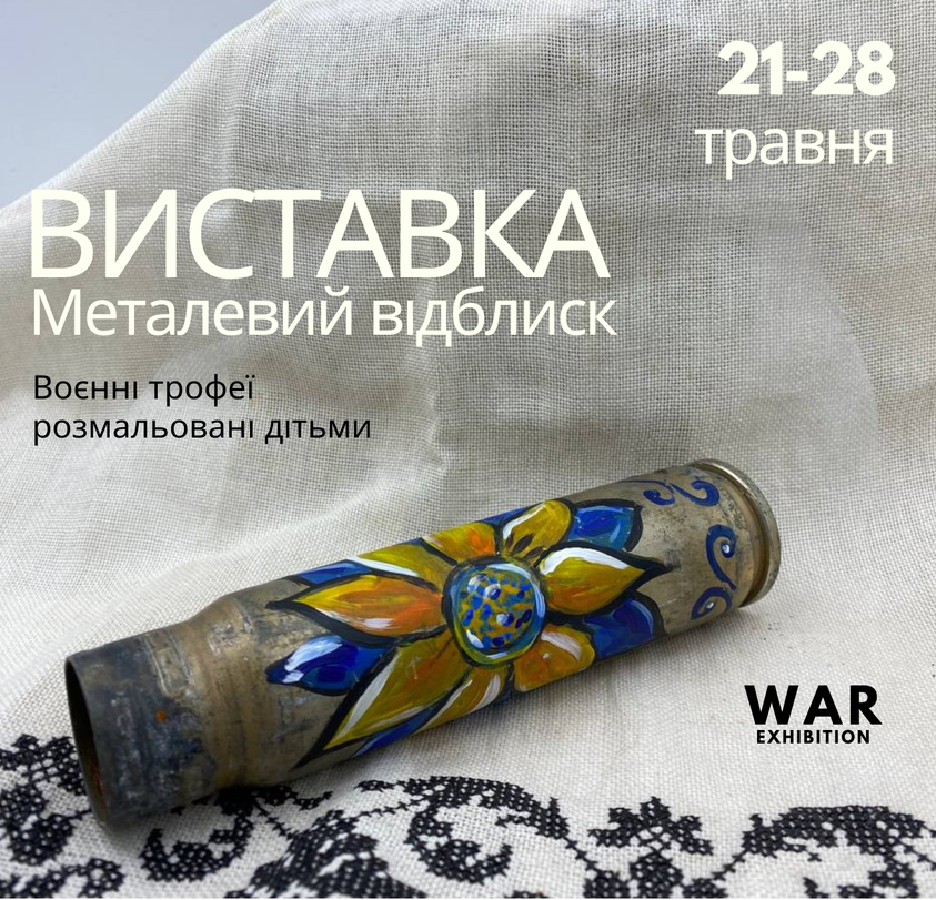 Виставка воєнних трофеїв, розмальованих дітьми, «Металевий відблиск» стартує 21 травня в Луцькій Галереї Мистецтв на вул. Лесі Українки 24/а та діятиме до 28 травня.
