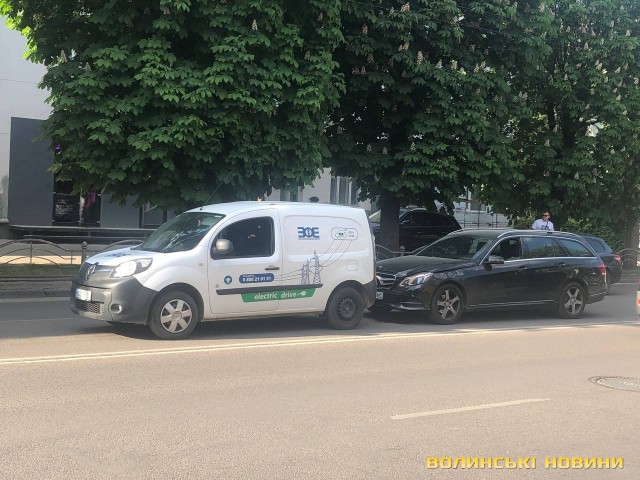 Автомобіль Mercedes врізався у Renault з логотипом «Волиньобленерго».