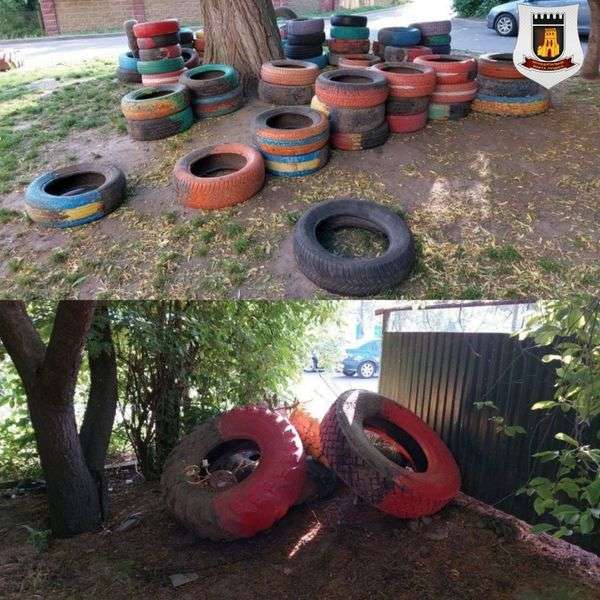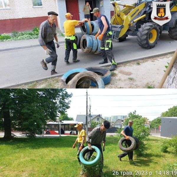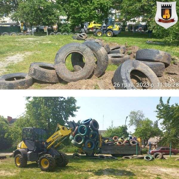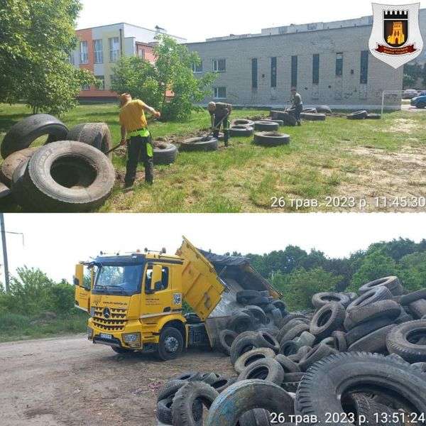 У Луцьку продовжують вивозити старі автомобільні шини з дворів та територій дитсадків.