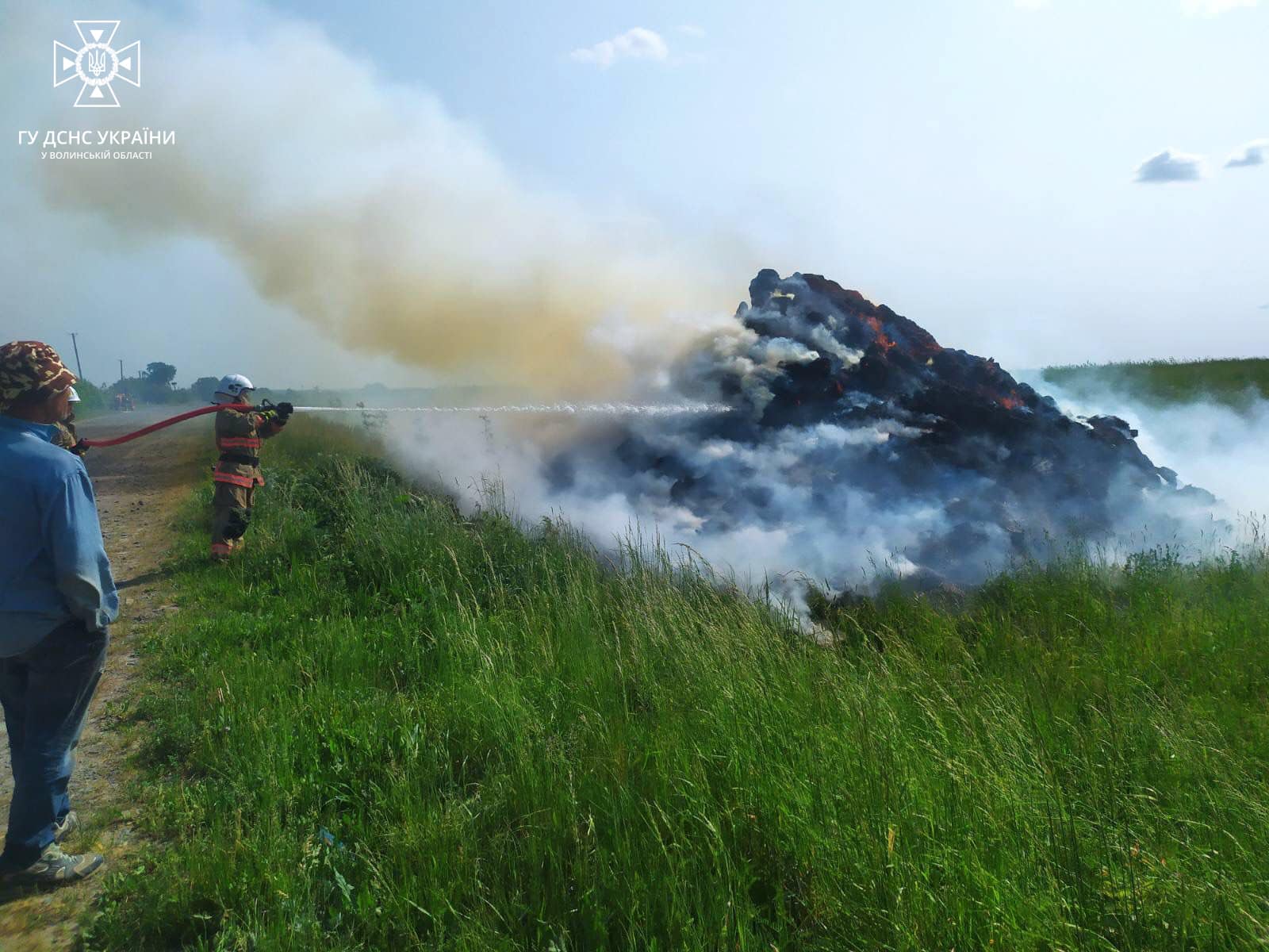 О 16:05 поступив виклик про те, що у селі Новий двір Ковельського району горить скирда пресованих тюків соломи. На місці пожежі працювали вогнеборці 17 державно пожежно-рятувальної частини смт Турійськ разом з місцевою пожежною охороною с. Осьмиговичі. Вогнем знищено 2 т соломи, пошкоджено 2,8 т соломи. Ймовірна причина пожежі — необережне поводження з вогнем невстановлених осіб.
