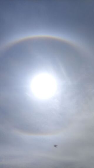 3 травня у небі над Україною з'явилося сонячне гало – незвичайне оптичне явище, що виникає в атмосфері внаслідок заломлення та відбиття світла в льодяних кристалах.