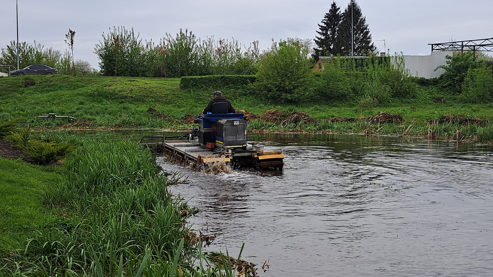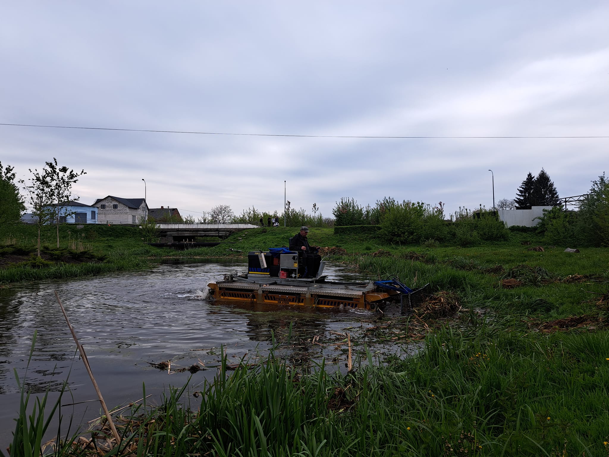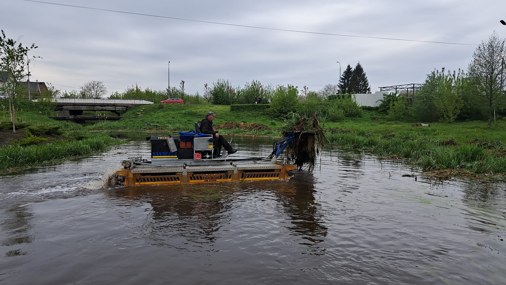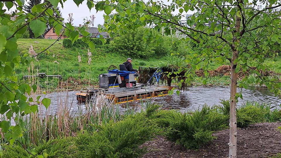 Всі роботи з очищення водойми виконує багатофункціональна машина-амфібія «ТRUXOR», яка оснащена косаркою для скошування очерету та ситом для його збору.