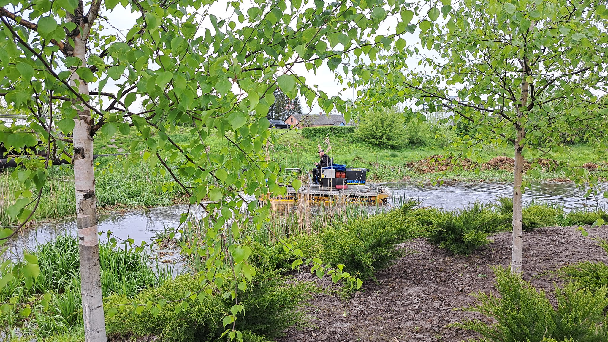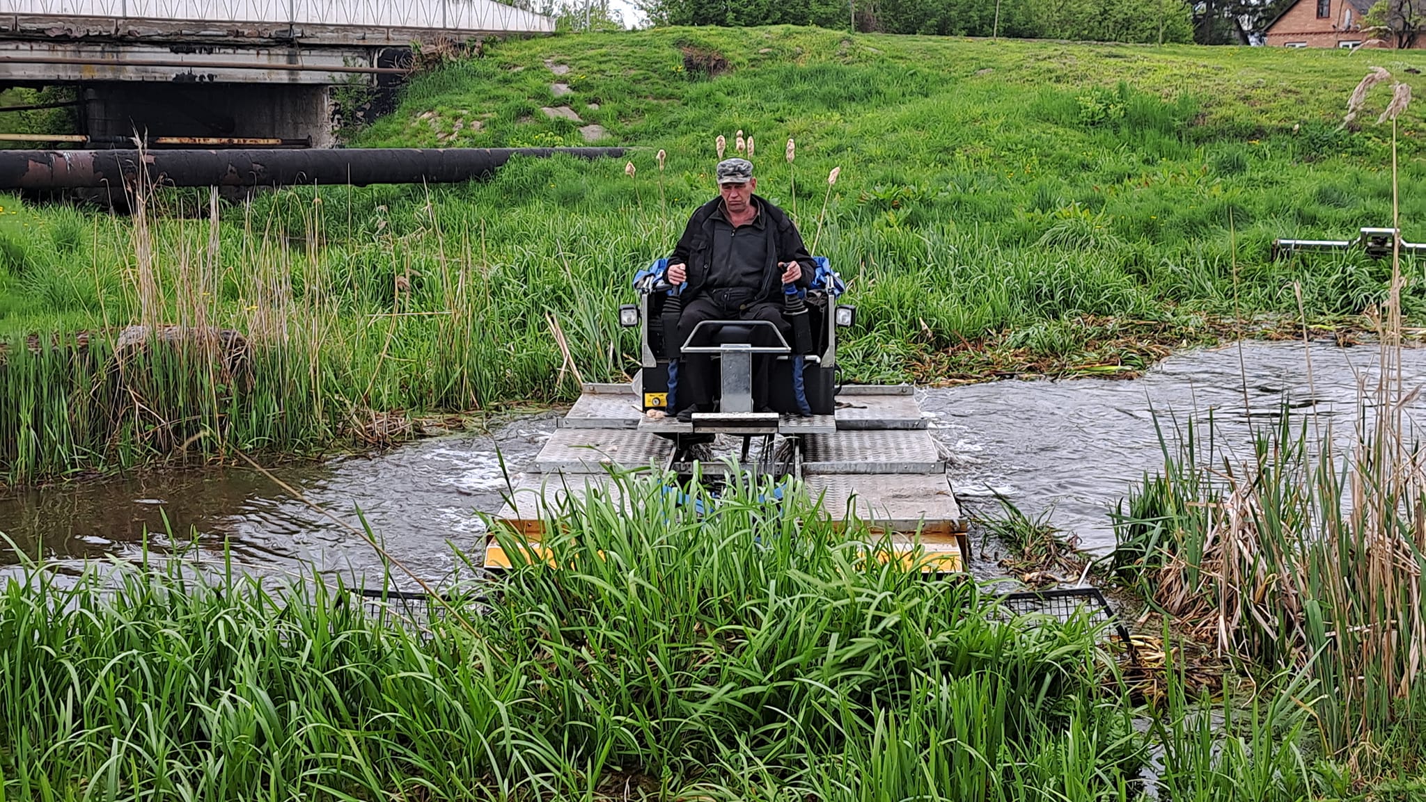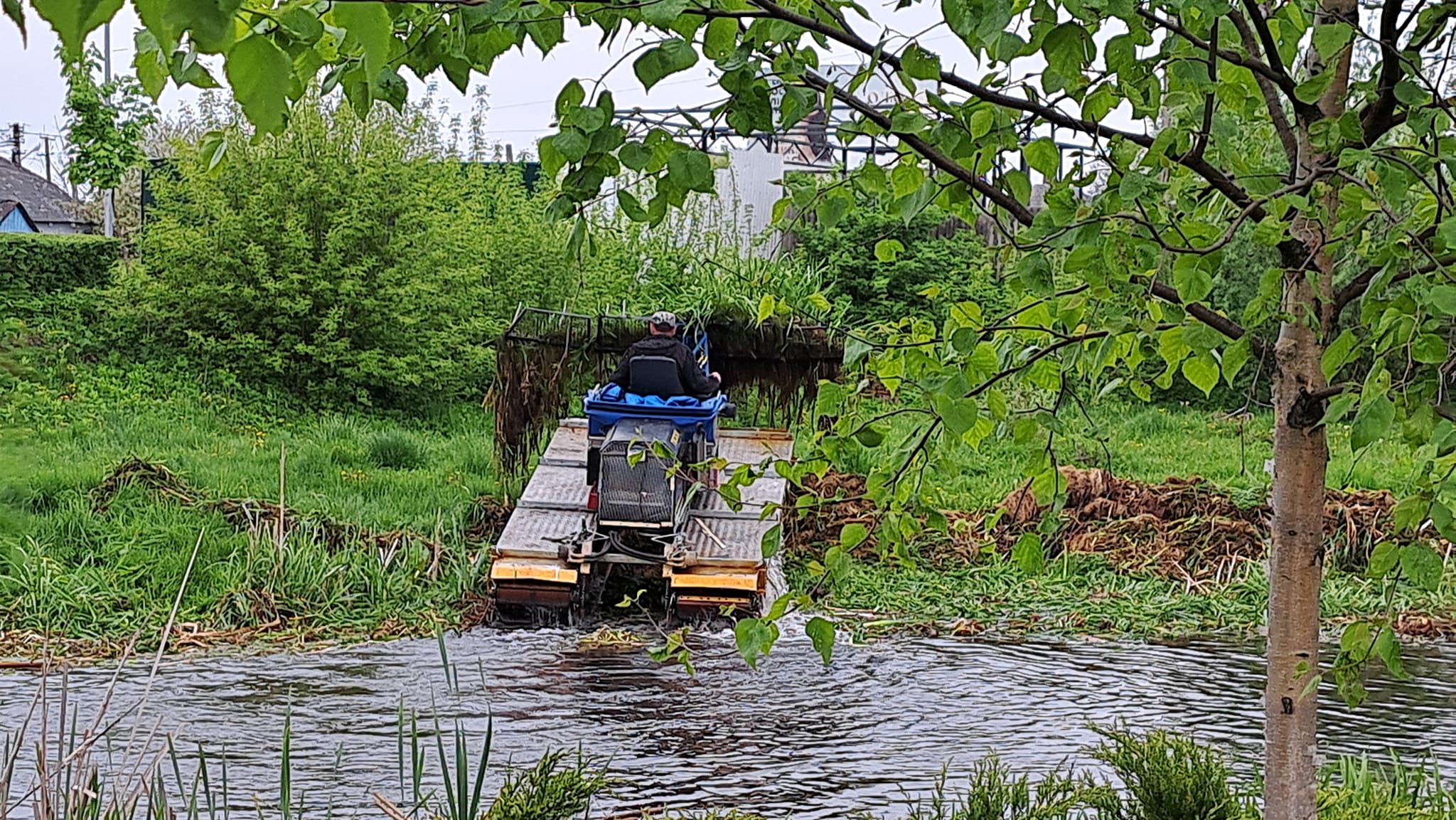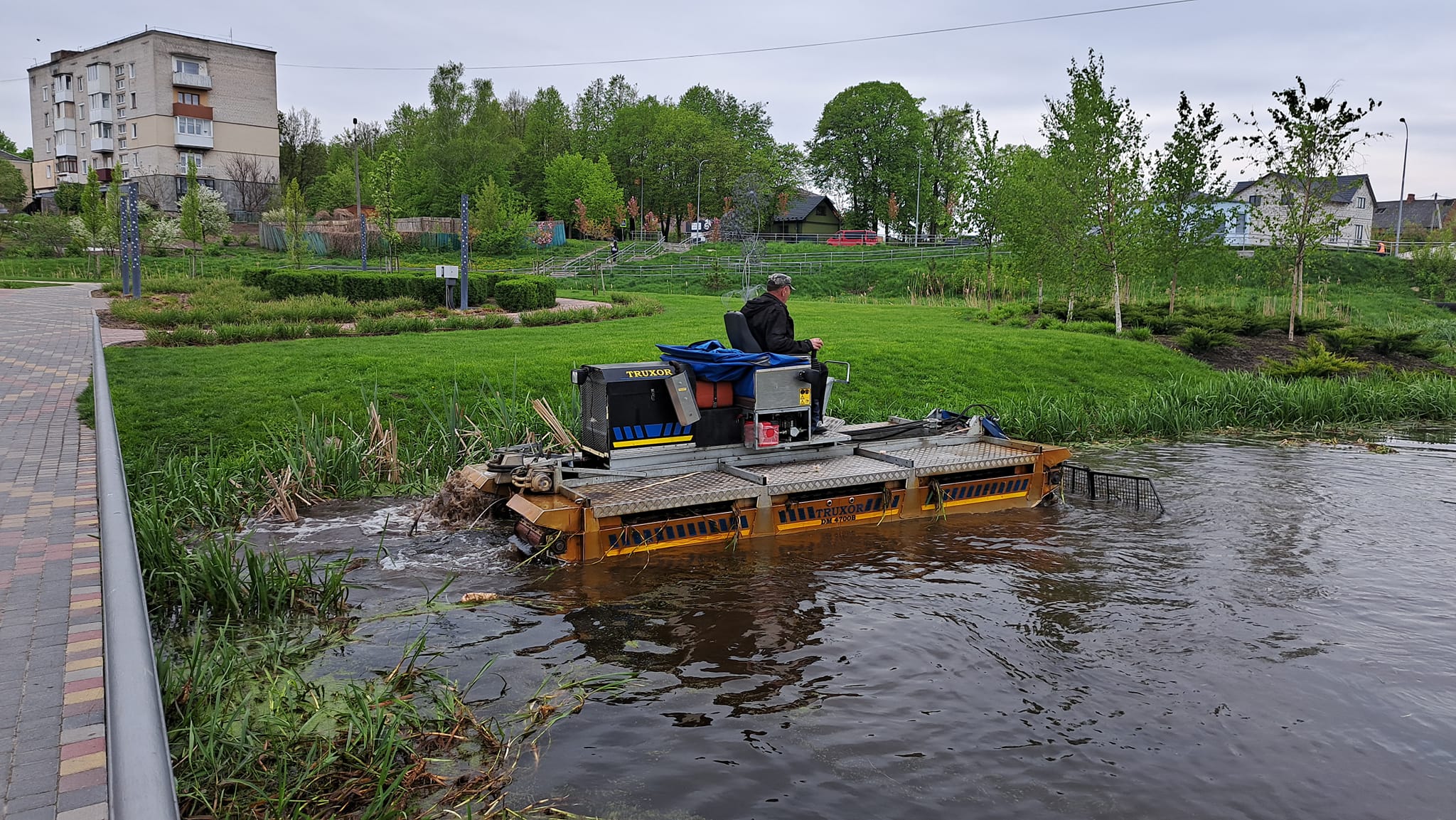 Всі роботи з очищення водойми виконує багатофункціональна машина-амфібія «ТRUXOR», яка оснащена косаркою для скошування очерету та ситом для його збору.