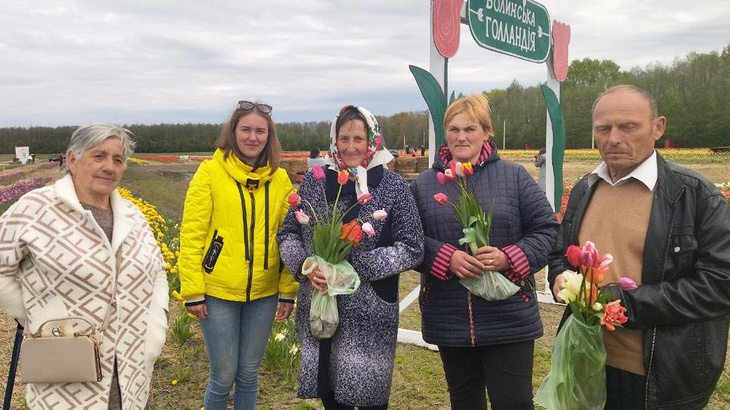 Поглянути на тюльпанове поле приїхала Надія Вітюк із села Озерці разом із родиною та сусідами. Жінка говорить, що мріяла побачити таку кількість квіток, бо й сама є власницею великого квітника.