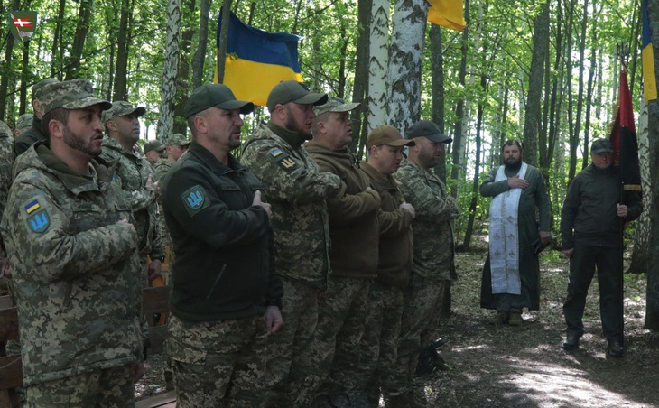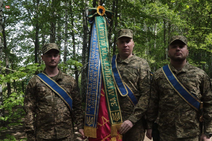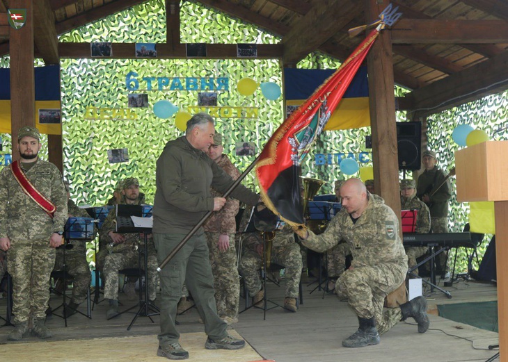 Під час урочистості Олег Хрипун та Олег Ганжа вручили освячений капеланом отцем Михайлом мотиваційний іменний прапор мотопіхотному батальйону нашої бригади.