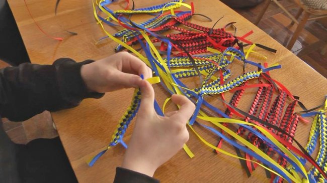 "Один рулон, наприклад, жовтої або синьої стрічки 36 метрів – 14 гривень. Стрічок купляю близько 10-15 штук на один колір. Одного рулону мені вистачає 30, 35, 40 браслетів", – зазначив хлопець.