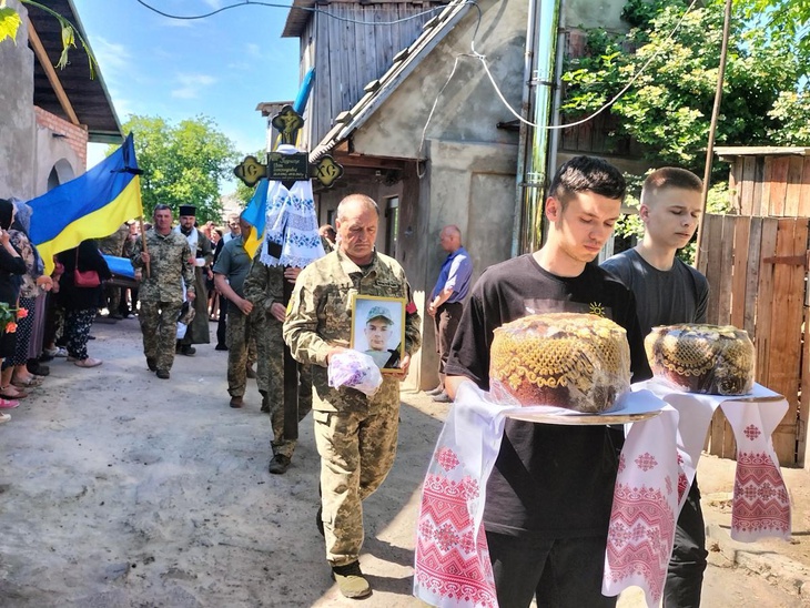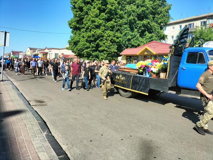 Велелюдною процесією востаннє від рідного дому провели Героя до храму Архістратига Михаїла, де відбулося відспівування загиблого захисника України.