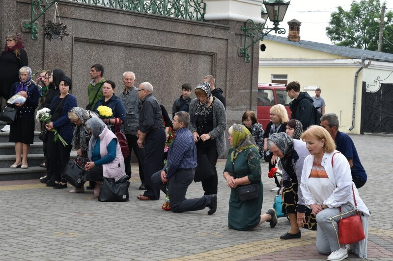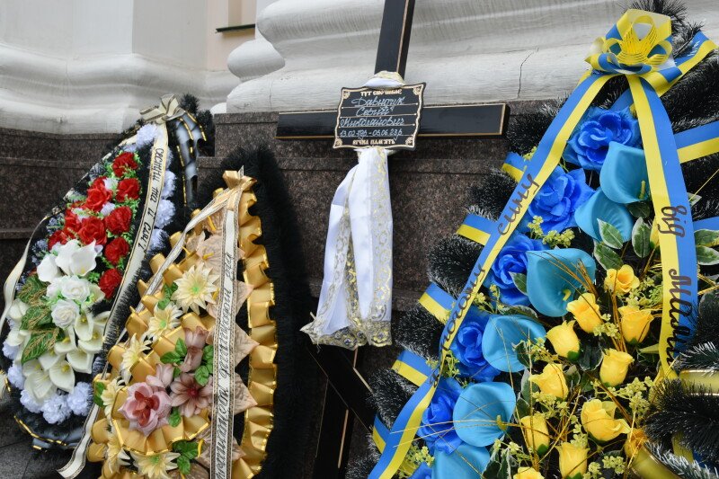 Після завершення панахиди домовину з тілом Героя прощальною ходою пронесли Театральним майданом. Біля фотостенду “Герої Небесної Сотні – Загинули за єдність України” скорботна процесія зупинилася і виконала Державний Гімн.