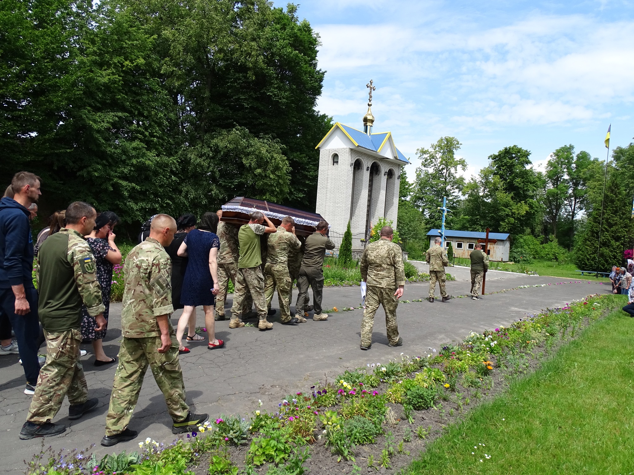 На рідну землю воїн повернувся уквітчаними дорогами, живим коридором шани. За його душу піднеслася спільна молитва. У мить прощання для Героя прозвучав Державний Гімн України та військовий салют.