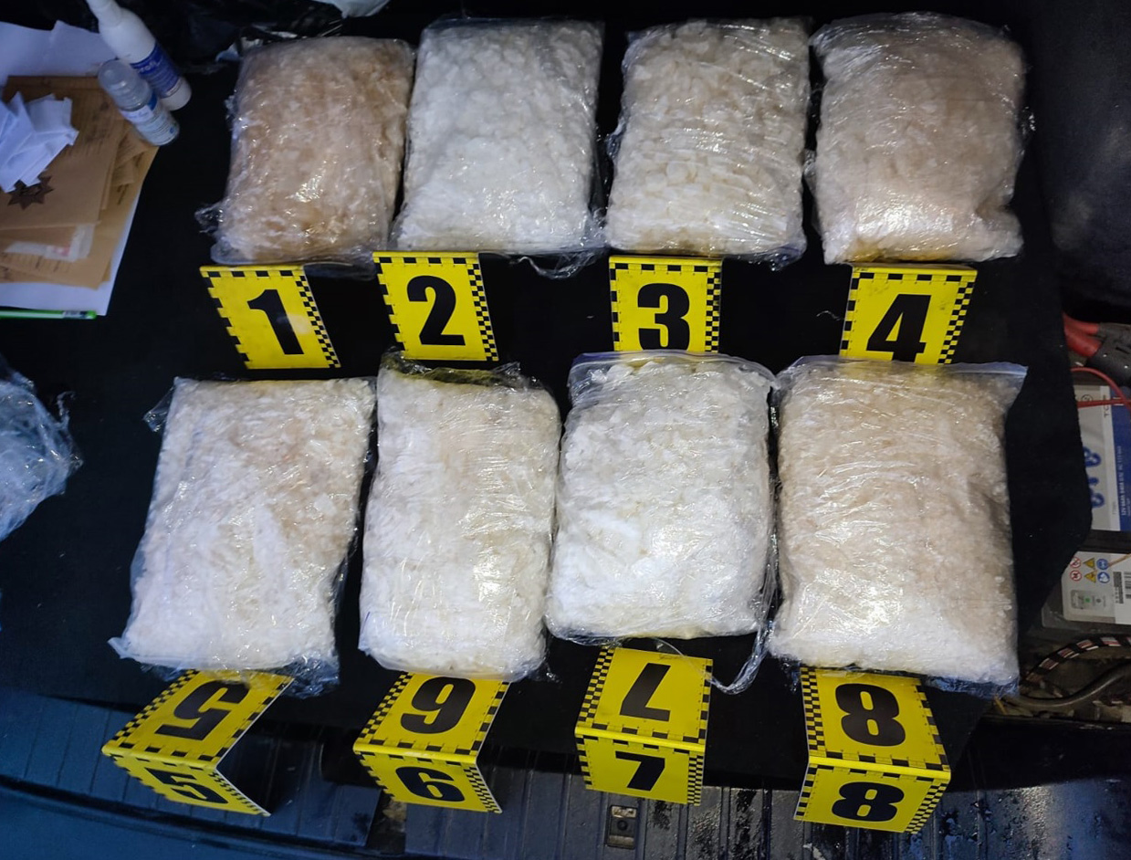 Під час обшуку в транспортному засобі виявили й вилучили понад 8 кілограмів психотропної речовини "Альфа PVP", канабіс, грошові кошти, банківські картки, мобільні телефони. 43-річний організатор наркобізнесу намагався заховати заборонені речовини навіть під капотом автомобіля.