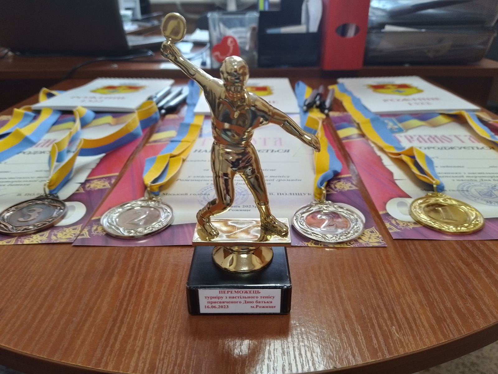 У приміщенні Рожищенського ліцею №1 відбувся благодійний тенісний турнір «Мій тато – Герой!», присвячений Дню батька, який цьогоріч відзначають 18 червня.