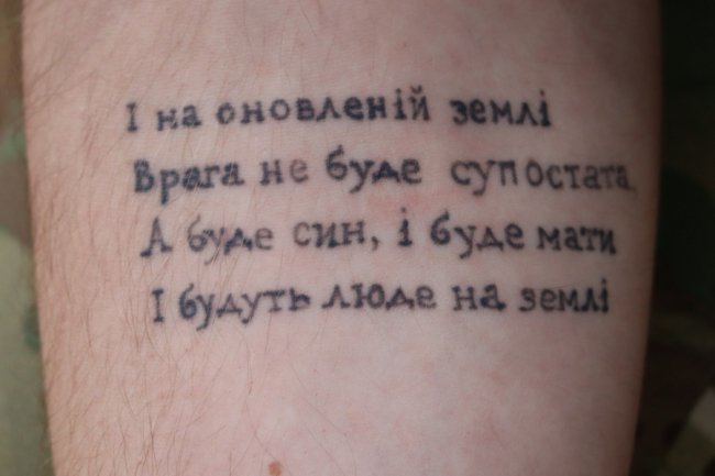 Максим, звісно, добре знав ці слова Тараса Григоровича – але саме того разу вони зачепили його за самісіньку душу: "Ніколи не мав бажання зробити татуювання. А тоді просто загорівся цією ідеєю. Відбувши наряд і маючи чотири години вільного часу я відпросився у командира й помчав у найближче містечко, де був салон тату. Майстер був неабияк заскочений – ніколи раніше поезію Шевченка йому «набивати» не доводилося. Впоралися за три години – тож на службу не запізнився. Жодного разу про той свій крок я не пошкодував. Але точно знаю – це перше та єдине татуювання в моєму житті".