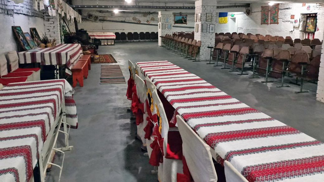 На стінах в укритті працівники закладу розвісили традиційні рушники, український стяг, стенд про Колківську повстанську республіку, картини з пейзажами, старовинний посуд, а також багато декоративних елементів. Частину приміщення, з її слів, обладнали для навчання студентів, аби освітній процес у разі повітряної тривоги не переривався.