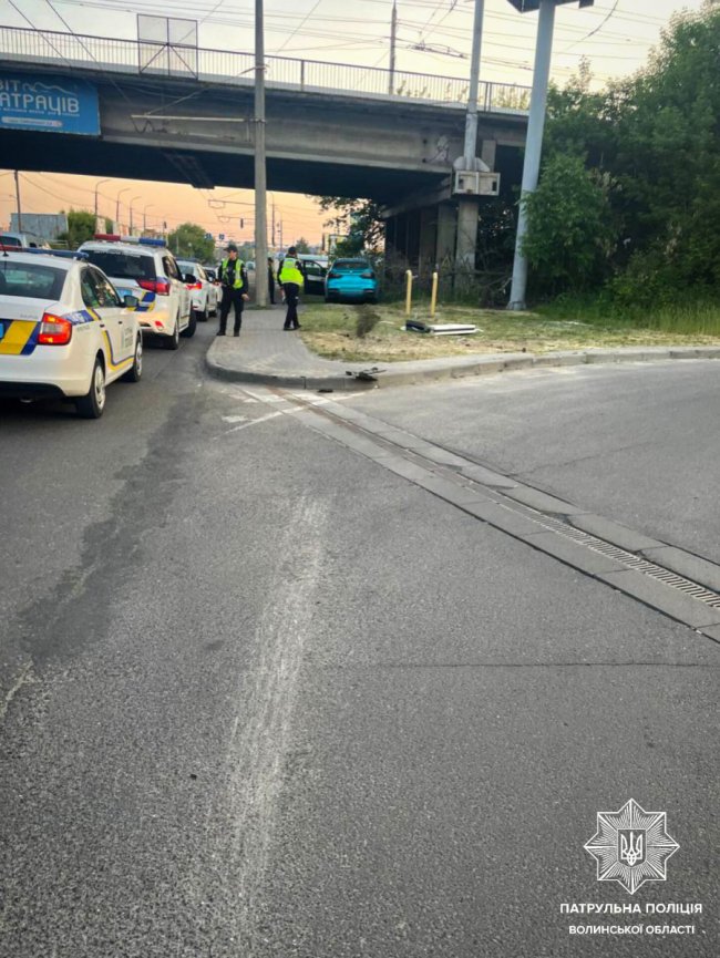 У Луцьку 2 червня водій BMV Х6 злетів з дороги та збив дорожній знак.