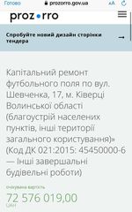 Згідно з інформацією, розміщеною в описі до тендеру, йдеться про капітальний ремонт футбольного поля по вулиці Шевченка, 17. Як вказано, місцева влада займається благоустроєм населених пунктів та територій загального користування.