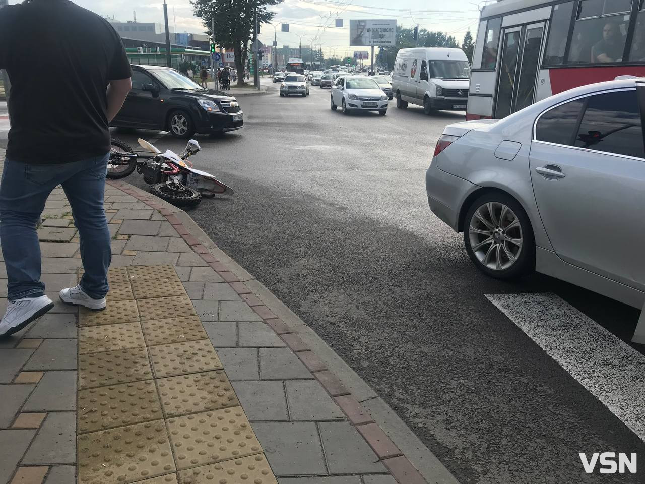У Луцьку на пішохідному переході неподалік «Там Таму» сталася аварія за участю БМВ та скутера.