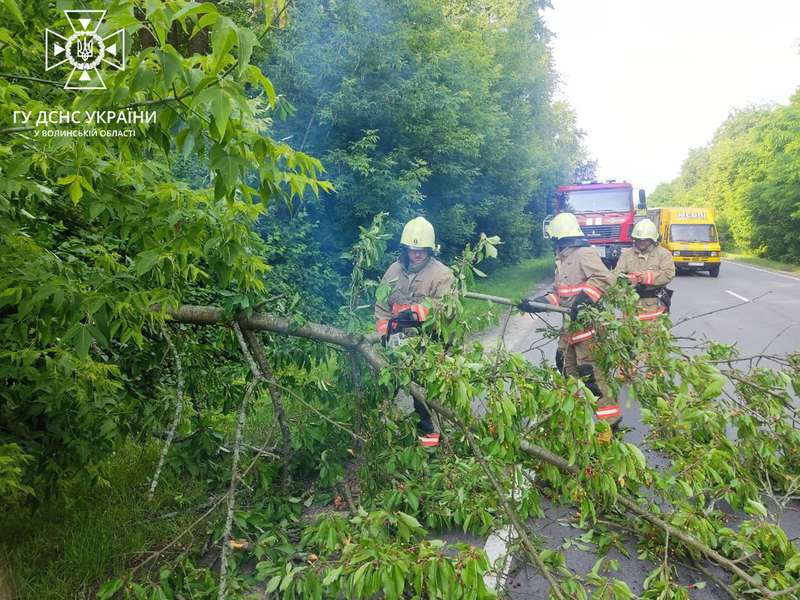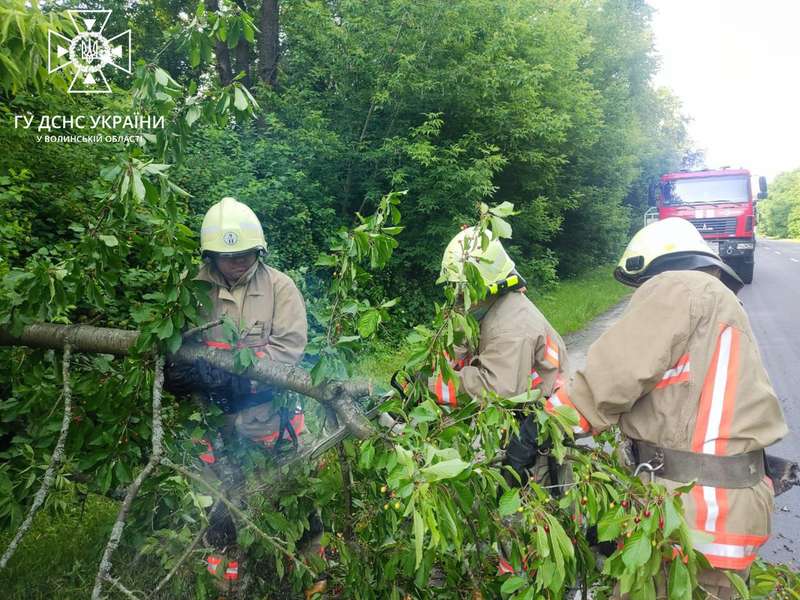 У четвер, 22 червня, о 08:15 бійці 9-ї Державної пожежно-рятувальної частини міста Горохів здійснили виїзд для прибирання дерева з проїжджої частини автомобільної дороги та відновили рух транспорту за селом Скобелка Луцького району.