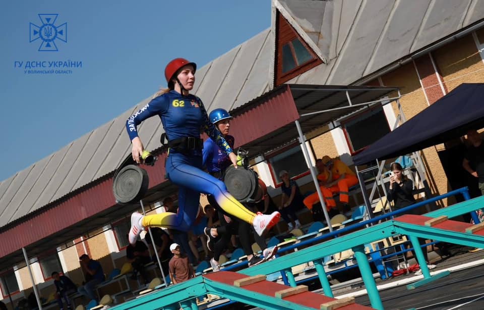 На змаганнях брали участь також і команди жінок-рятувальниць. Волинські представниці служби 101 вибороли загальнокомандне восьме місце, а в особистому заліку Юлія Гаврилюк здобула ІІІ місце у підйомі по штурмовій драбині у вікно 1-о поверху башти.