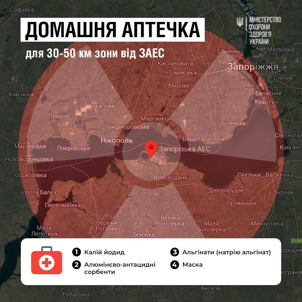 МОЗ продовжує інформувати про те, як підготуватися до можливої надзвичайної ситуації на тимчасово окупованій російськими військами Запорізькій АЕС.