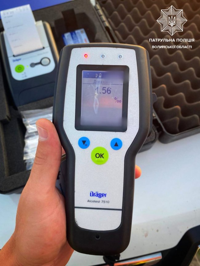 Інспектори помітили, що водій вантажівки DAF порушив правила дорожнього руху, тож зупинили транспортний засіб. Коли патрульні почали спілкуватися з керманичем, то виявили в нього явні ознаки алкогольного сп’яніння. Чоловік погодився пройти огляд на місці події. Прилад Drager дав результат 1,56 проміле, тож інспектори повідомили водію, що на нього буде складено відповідні адмінматеріали.