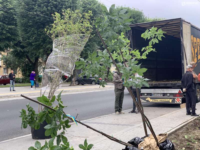 Крім того, на клумби додатково позвозили ґрунт, щоб дерева краще прижилися у новій землі. Поки, за словами очевидців, висаджують лише каштани. Всього на проспекті Волі планують посадити майже 170 дерев та близько 4000 кущів.