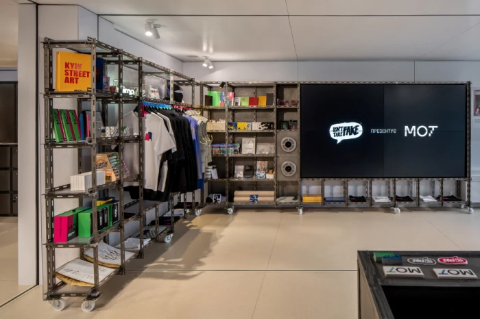 Частиною простору стане гіфтстор — своєрідний сувенірний магазин. Більшість речей у ньому — це лімітовані колекції у співпраці з українськими митцями та брендами, серед яких m0d44, O(FourFour), Broq, Pilsok, Woolkrafts, Sabi Candles та інші. Крім того тут можна буде придбати «частинку» МОТ — контейнери з гіпсу та кераміки, створені вручну українськими майстрами.