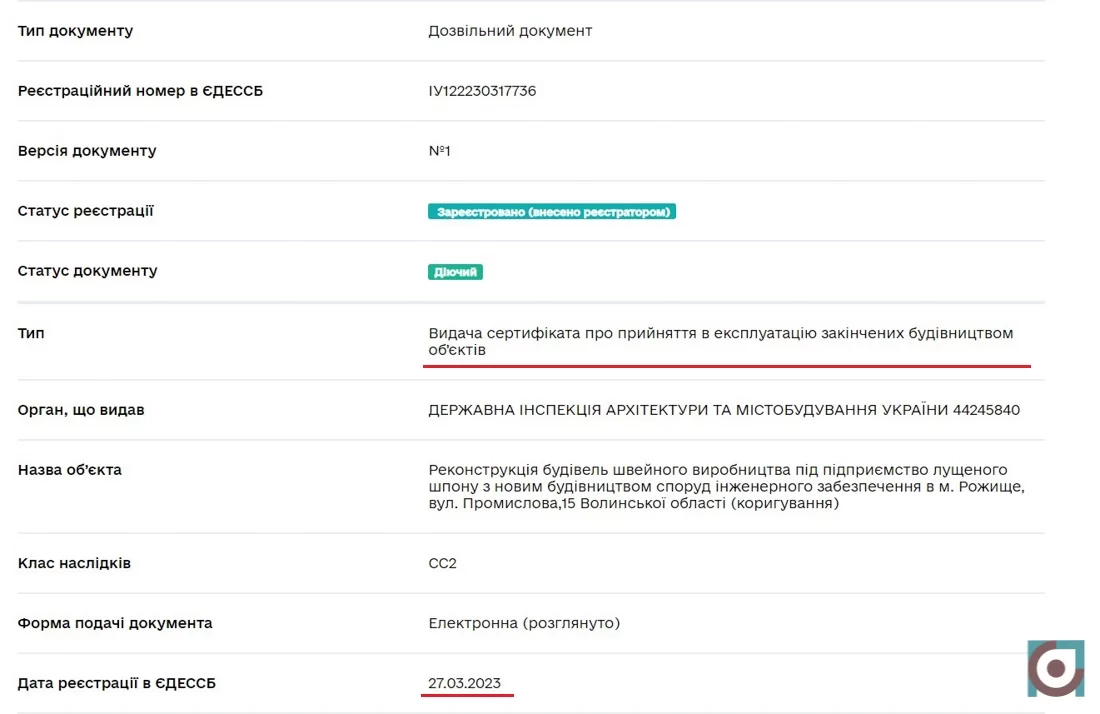 Державна інспекція архітектури та містобудування України видала «Вудленду» сертифікат про прийняття в експлуатацію закінчених будівництвом об’єктів лише в березні 2023 року. І це означає, що реконструкція офіційно завершилася.