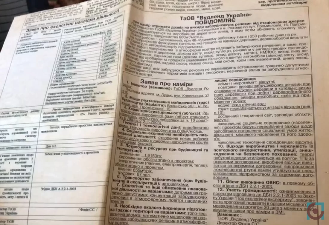Проте у відповіді на запити і в управлінні екології та природних ресурсів Волинської ОДА і в Міністерстві захисту довкілля та природних ресурсів України запевняють, що підприємство «Вудленд Україна» оцінку впливу на довкілля не здійснювало.