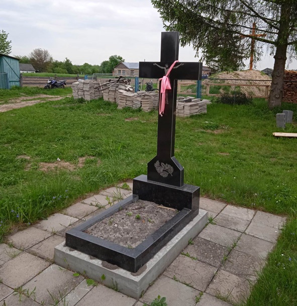 Цей чорний хрест, на якому нема таблички, отець Максим разом з прихожанами встановили на місці старих похилених пам’ятників. Таким чином вирішили впорядкувати поховання, бо зазвичай біля храму хоронили священників. Але чия це могила – невідомо. Навіть чоловік, який ще за Польщі ходив у церкву, не знав імені.