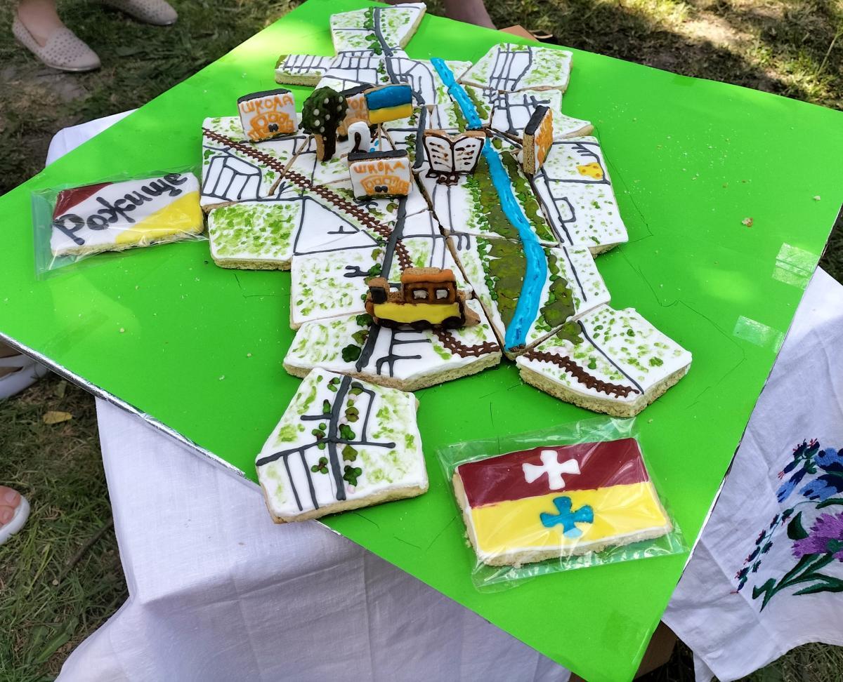 Оригінальними були і працівники КЗ «Публічна бібліотека» , які представили цікаву бібліолокацію «Я люблю Рожище», родзинкою якої стала випечена бібліотекарем Оксаною Глинюк та складена з патріотичного печива карта міста.