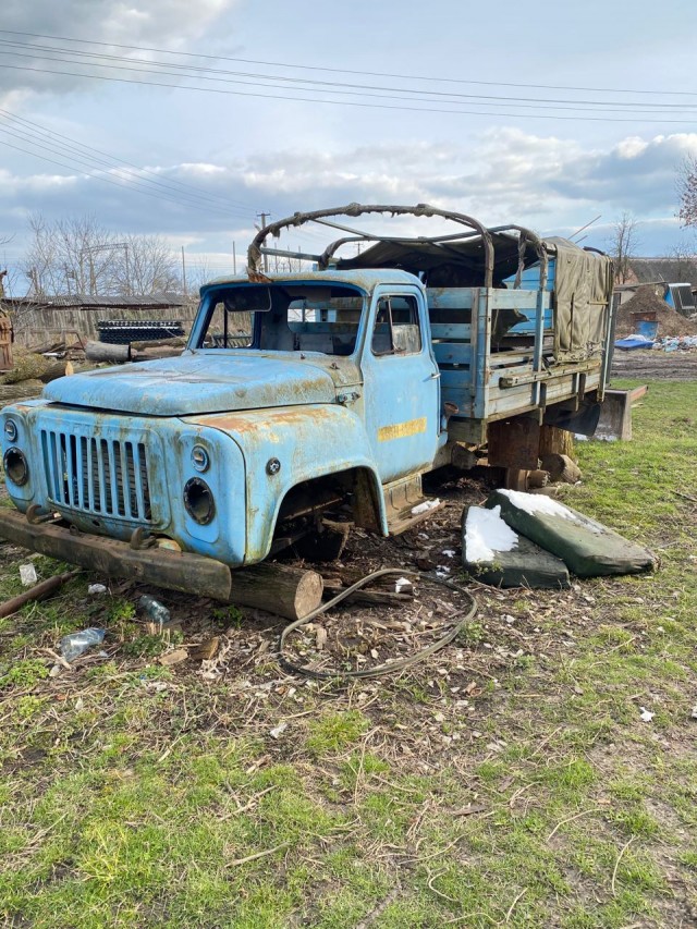 У вантажівки відсутні колеса, скло, фари, кермо, сидіння та пошкоджено кузов.