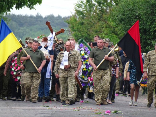Віддати данину шани захиснику і провести його в останню земну дорогу зійшлася родина, знайомі, односельчани, мешканці громади. По встеленій маками та півоніями дорозі військовослужбовці на плечах пронесли воїна вулицями рідного села до місця земного спочинку.