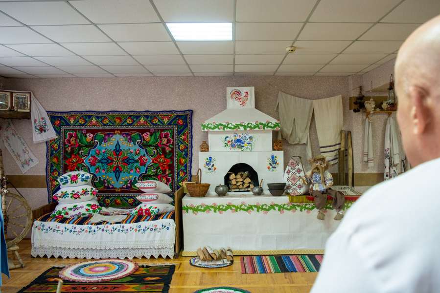 Ще одне творіння, яким у пансіонаті теж дуже пишаються, – українська світлиця. Експозицію національних старожитностей і побуту працівники разом з підопічними створювали майже рік. Рушники, вишиваний одяг, посуд, предмети побуту – усе автентичне, багато речей з 19 століття. Анатолій Олександрович доклав тут і руки, і смикалку.