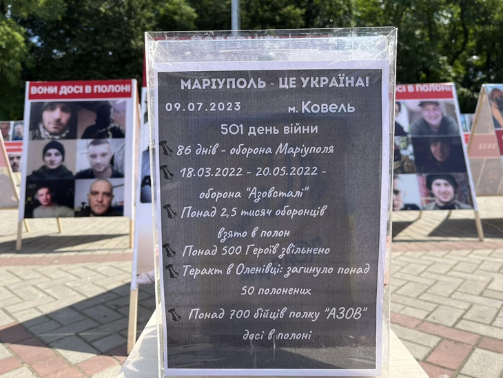 "У 501-й день повномасштабної війни, і на 420-й день полону оборонців, виставка відбулася у Ковелі і вирушає далі. Тридцять стендів із фото захисників. І серед них - троє наших ковельських хлопців — Бакум Владислав, Богдан Андрій, Оксеньчук Владислав, які пройшли Маріуполь, «Азовсталь», - пише очільник громади.