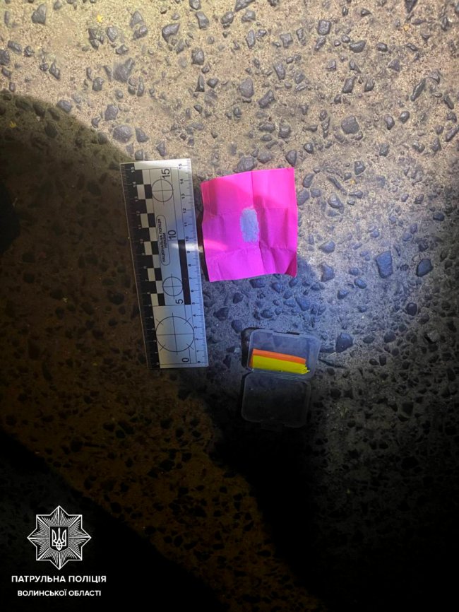 Поліцейські вирішили також провести щодо керманича поверхневу перевірку, під час якої він викинув на землю пластикову коробочку з двома згортками. У них містилася біла кристалічна речовина, що ззовні була схожа на наркотичну.