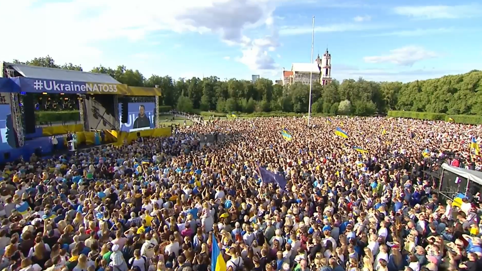 Українські прапори на литовських вулицях однозначно доводять – ми вже союзники, і Україна захистить і свою, і вашу свободу! І ніколи, ніколи й нікому не можна озиратися на Москву! Я хочу подякувати вам. Я дякую тобі, Гітанасе! Ти завжди нам дуже сильно допомагаєш. Дякую вам, пане мере! І дякую усім вам на площі зараз!