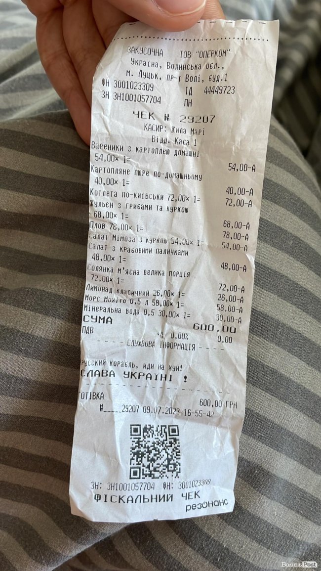 Інформаційне агентство ВолиньPost намагалося отримати коментар від ресторану. За телефоном «гарячої лінії», який вдалося відшукати, учора, 11 липня, запевнили, що з’ясують ситуацію та перетелефонують та передадуть наші контакти тим, хто її прокоментує. Утім коментаря на момент публікації ми не дочекалися.