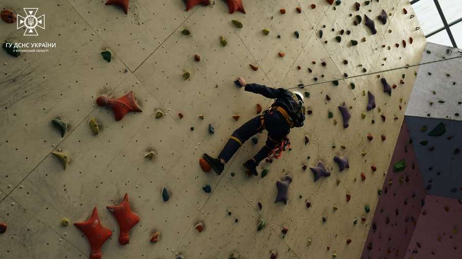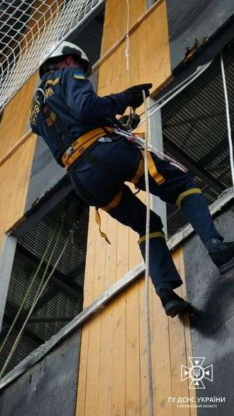 Волинські рятувальники вдосконалювали навички проведення рятувальних робіт на висоті за допомогою альпіністського спорядження.