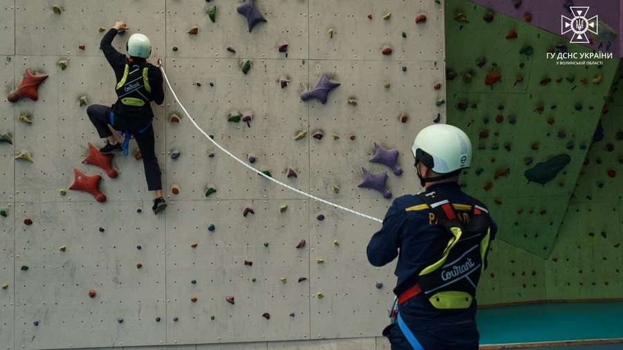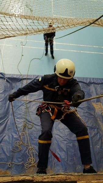 Під час заняття співробітники ДСНС відпрацювали елементи організації спуску, підйому та евакуації потерпілого з висоти навчальної башти за допомогою спеціального верхолазного обладнання, підйом по вертикальних перилах за допомогою елементу спорядження альпіністів – жумара, спуск по вертикальних перилах з використанням спускового пристрою та командної страховки, підйом по скельній ділянці з використанням нижньої командної страховки.