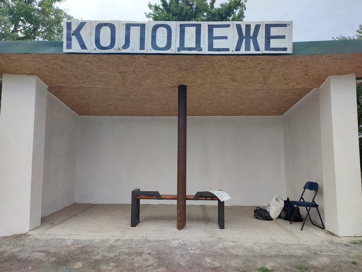 Перетворити зупинку на патріотичний об’єкт взявся художник-переселенець із Курахового Володимир Яницький разом із дружиною Ганною. Долучилися до цієї справи і місцеві мешканці – активна молодь, культпрацівники, депутатка Валентина Гогой.