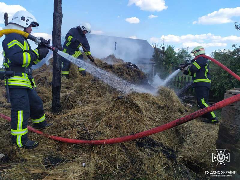 Увечері цього ж дня вогнеборці 11-ї ДПРЧ смт Шацьк спільно з працівниками МПО села Піща загасили пожежу оборіга з сіном в селі Пулемець Ковельського району. Ймовірна причина загорання – дитячі пустощі з вогнем.