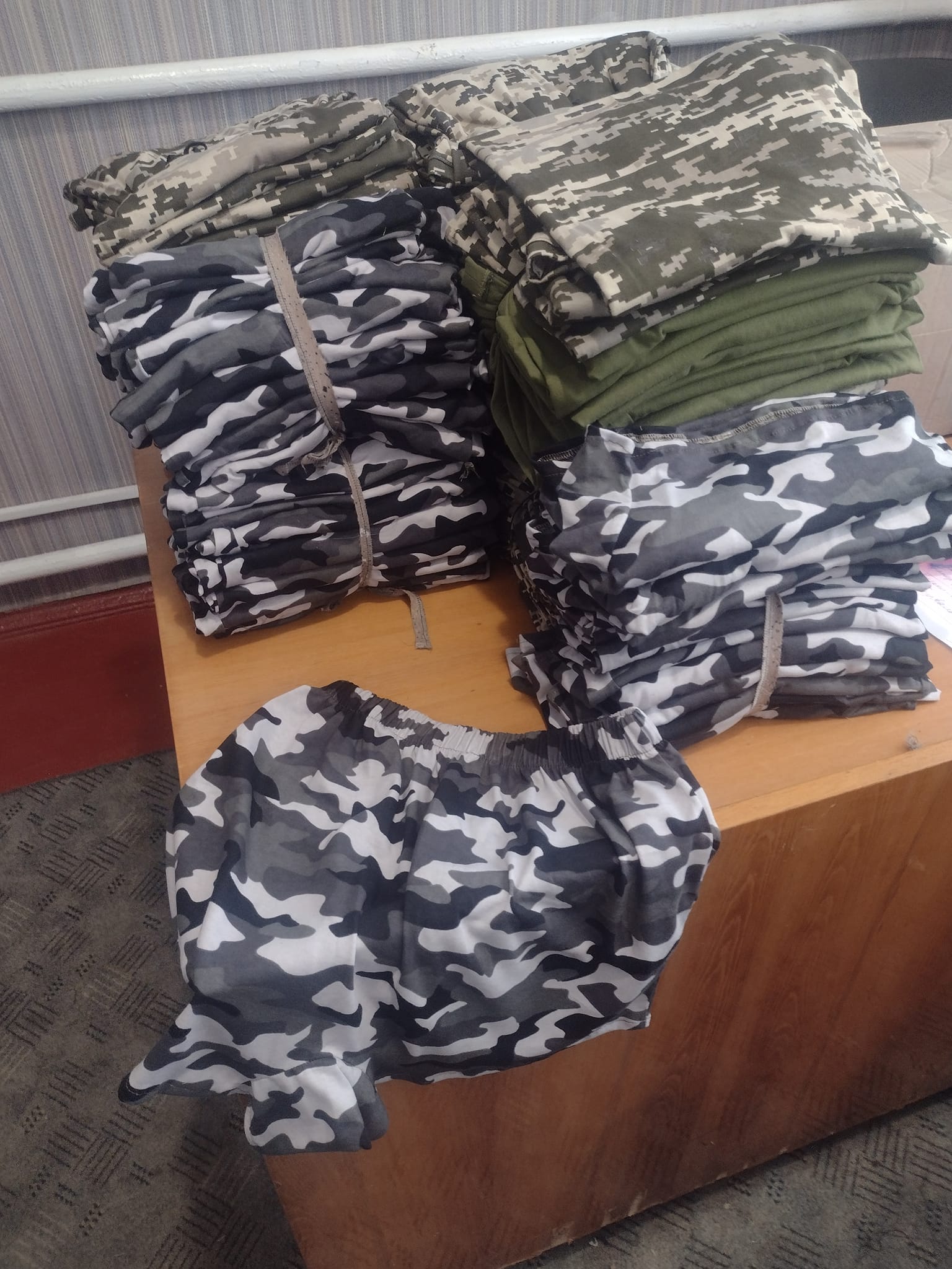 За кошти працівників тракторної бригади, механізаторів, спеціалістів, водіїв ТОВ «П’ятидні» закуплено тканину та матеріали для пошиття футболок та нижньої білизни для захисників на передову на суму 12 тисяч гривень», – повідомила у фейсбуці староста округу Мар’яна Дячук.