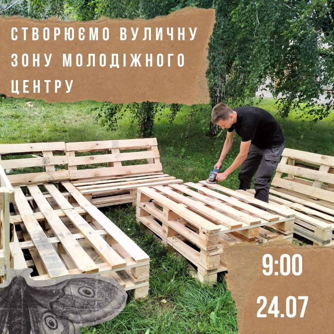 24 липня о 09:00 ми розпочинаємо збірку меблів для вуличної відпочинкової зони нашого молодіжного центу.