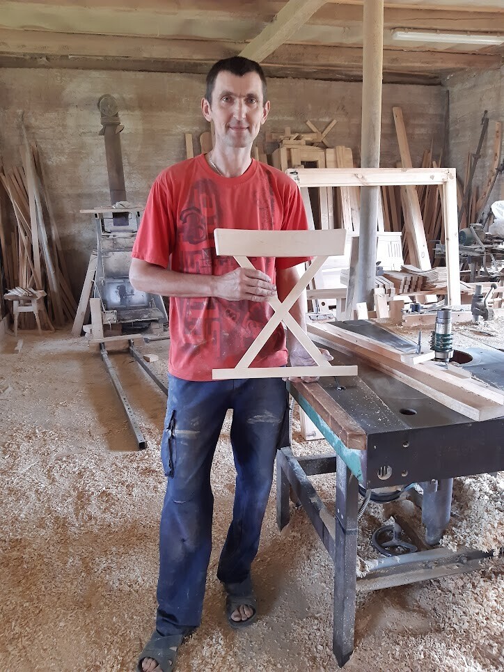 Спершу на примітивному саморобному верстаті точив деталі для табуреток, столів. Готові меблі батьківським мотоциклом возив на ринок у Камінь-Каширький. Так тривало кілька років, поки не “розкрутився”. Той верстат ще зберігаю як нагадування про ті часи. Не підіймається рука здати на металолом або порізати на метал, хоч і стоїть без діла. Пам’ять.