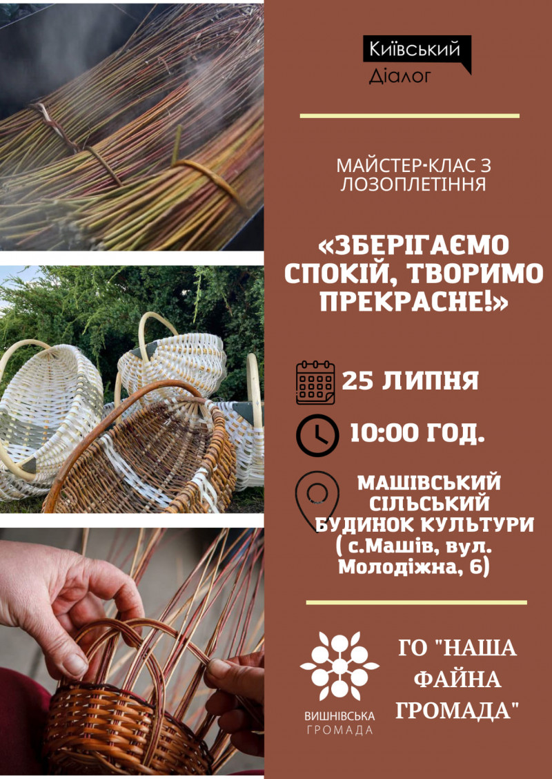Жителів Вишнівської громади та внутрішньо переміщених осіб запрошують на майстер-клас з лозоплетіння «Зберігаємо спокій, творимо прекрасне!».