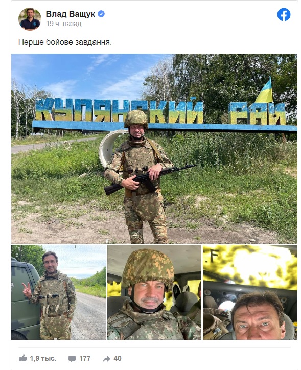 Ексфутболіст виклав фото із куп'янського напрямку на Харківщині. Ващук коротко підписав свої фото: "Перше бойове завдання", - пише Zn.Ua.