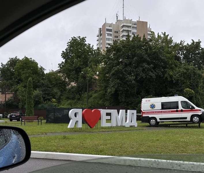 На території Волинського обласного центру екстреної медичної допомоги та медицини катастроф в честь Дня медичного працівника встановили стенд «Я люблю ЕМД», а позаду розмістили швидку